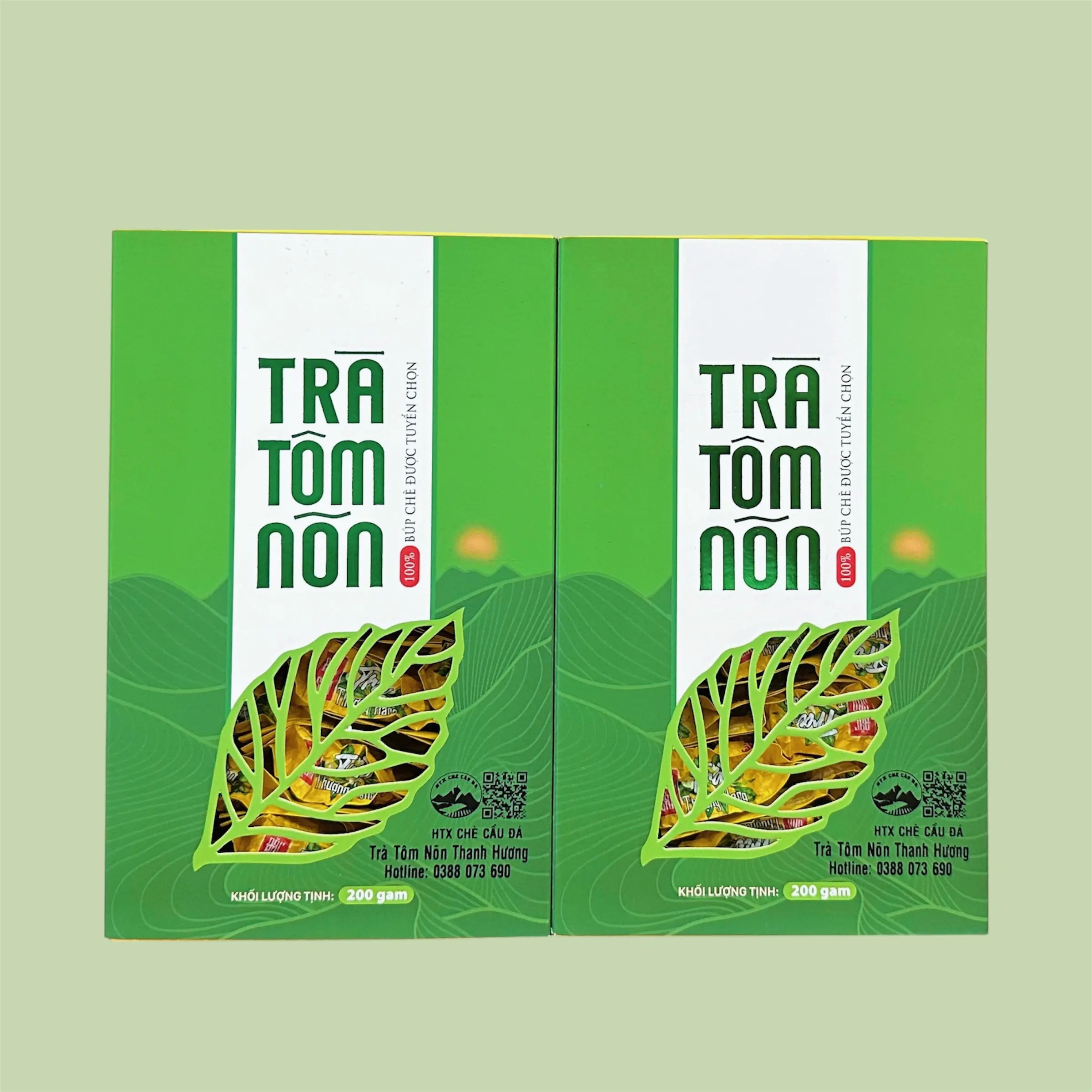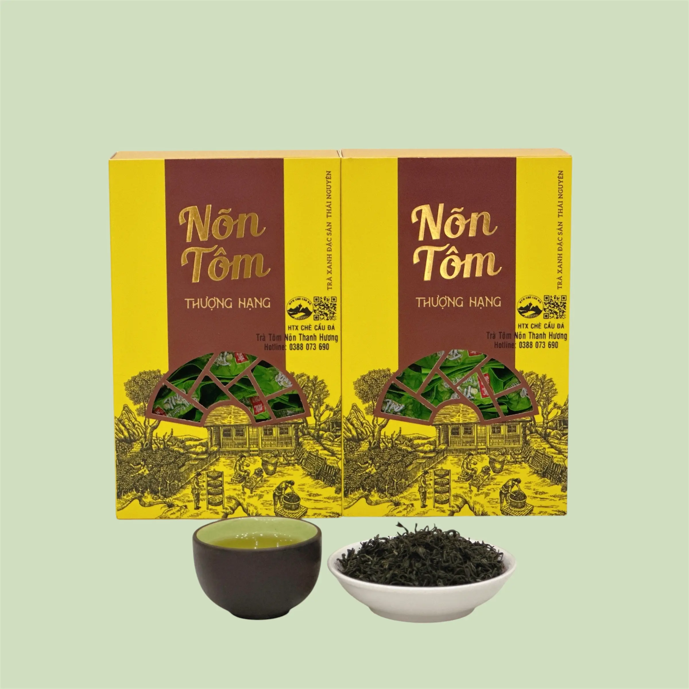 Trà tôm nõn được làm từ 100% búp chè tuyển chọn từ vùng chè nổi tiếng Thái Nguyên.